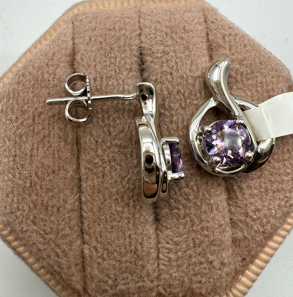 Sterling Silver 4.48ctw Amethyst & Pink Tourmaline Earrings