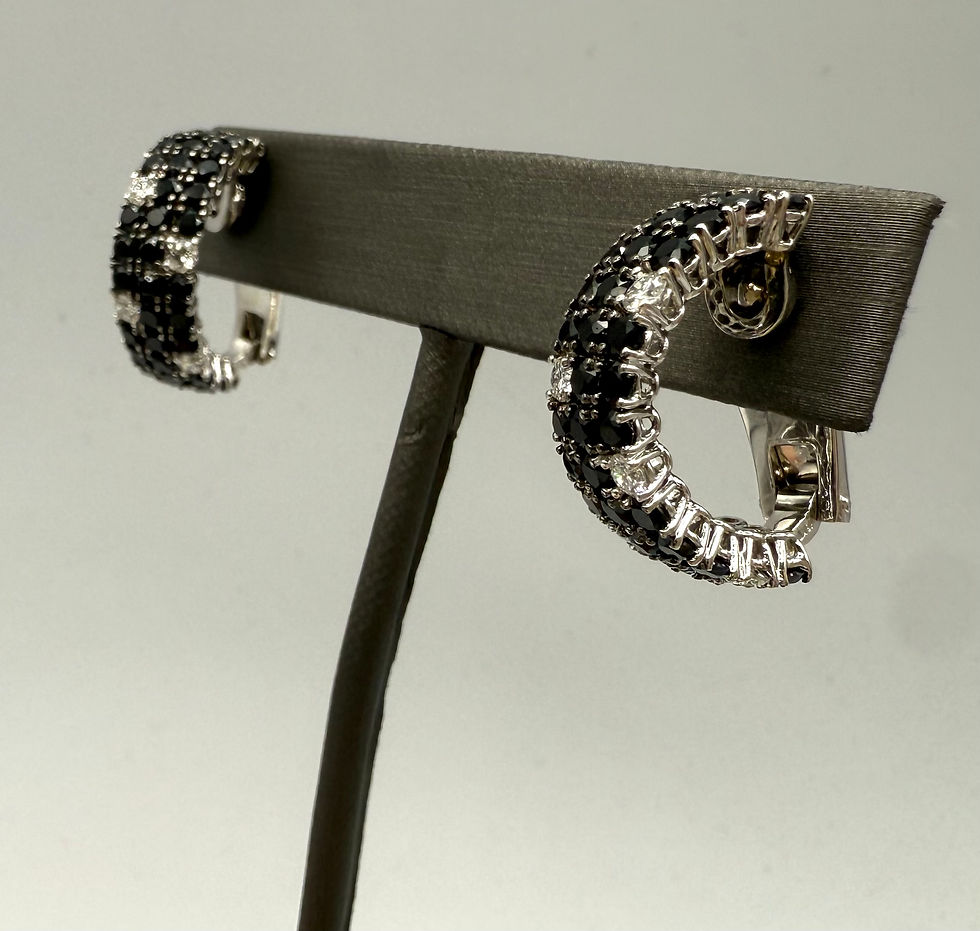 Roberto Coin 18 Karat White Gold 1.00ctw Diamond+ Black Diamond Hoops