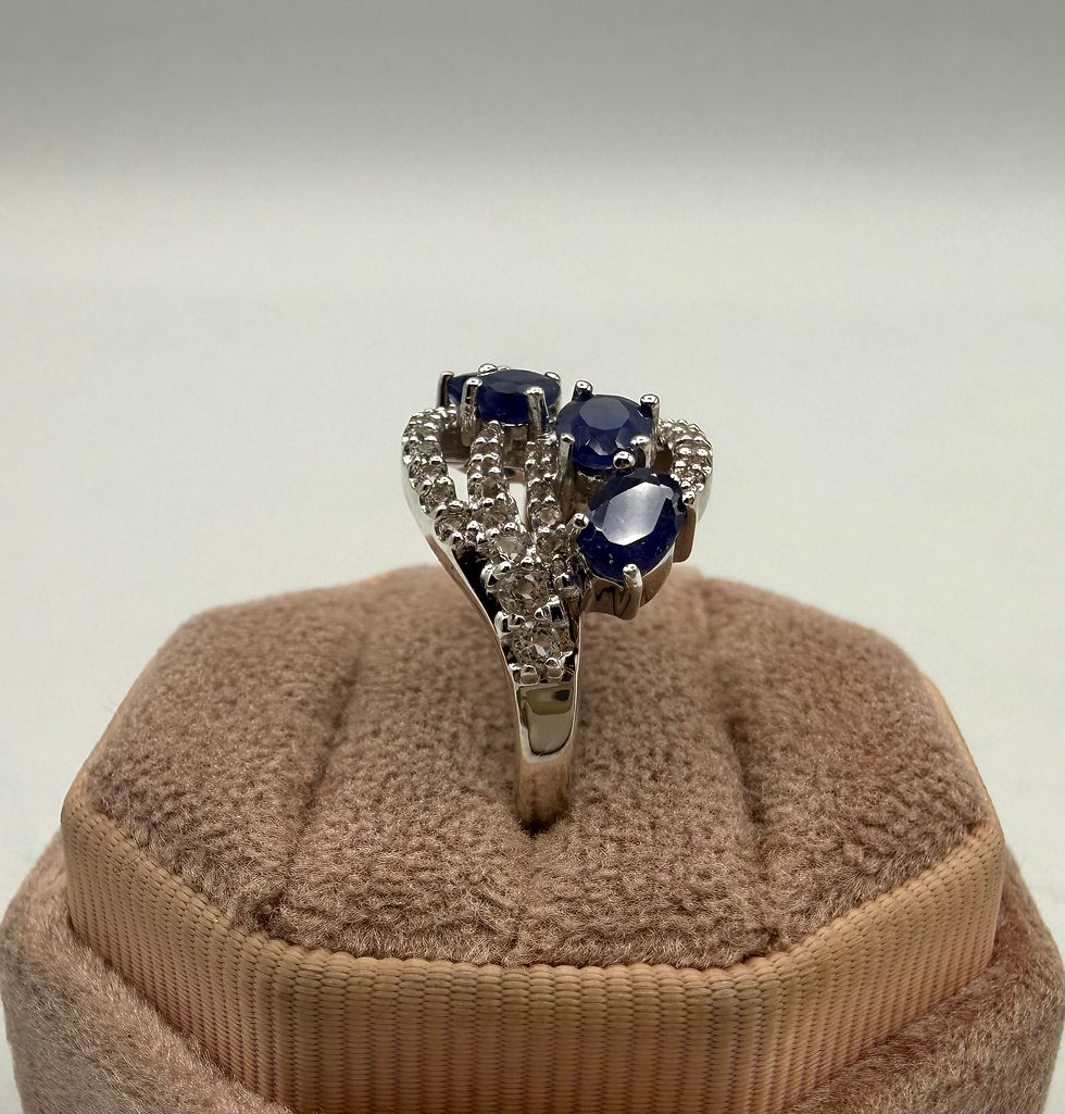 Sterling Silver Sapphire & Cubic Zirconia Ring