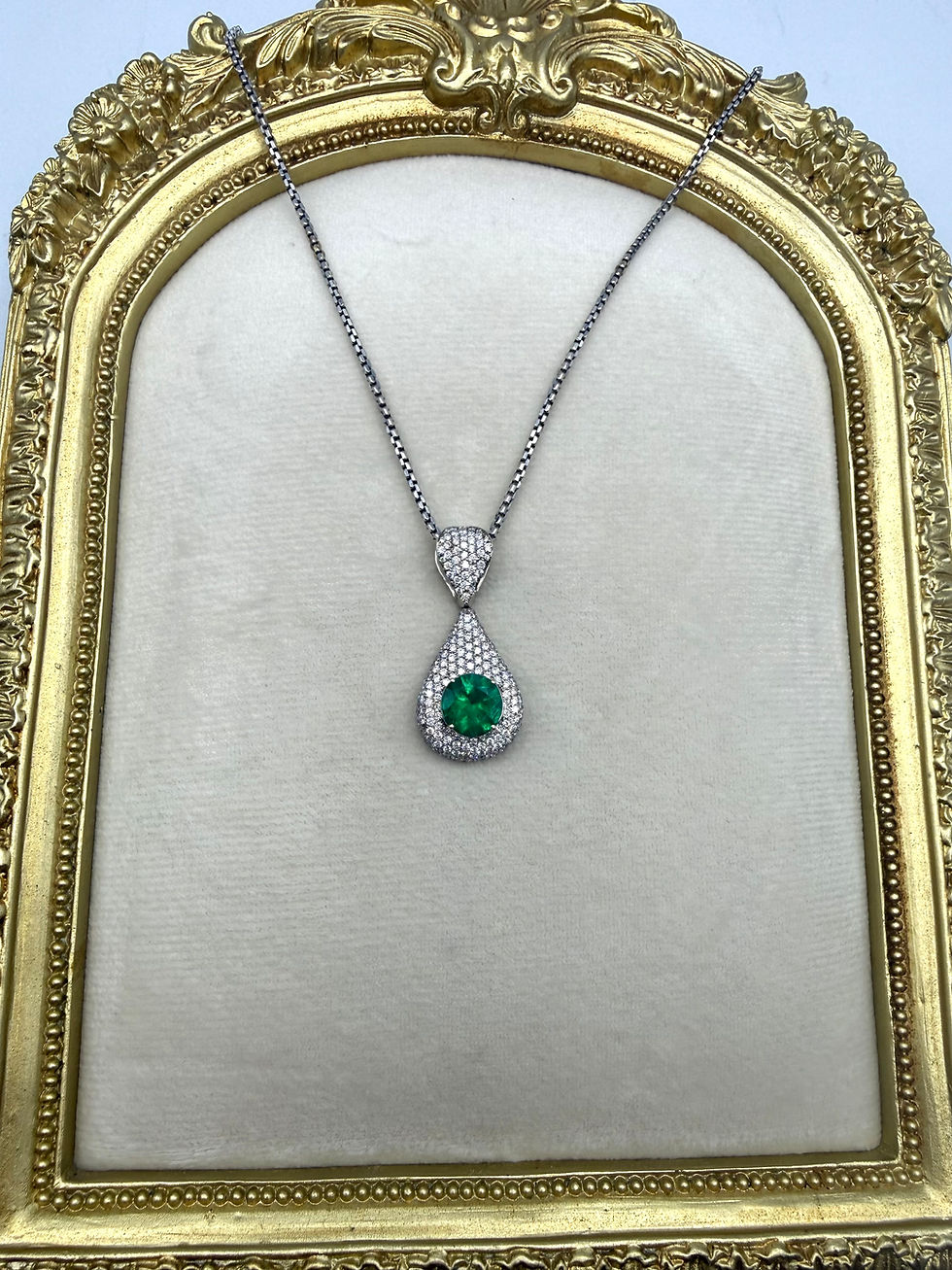 18 Karat White Gold 1.11ctw Diamond & .38ctw Emerald Pendant